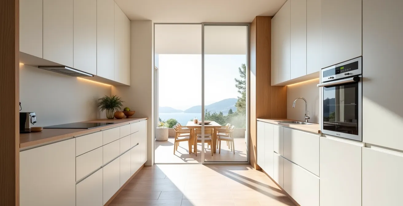 Esta ventaja es especialmente relevante en cocinas pequeñas o estrechas, donde el espacio de paso es limitado. Como se destaca en el sector, la eliminación de tiradores es una solución clave en hogares con niños para minimizar riesgos. La experiencia de estudios de diseño lo confirma: