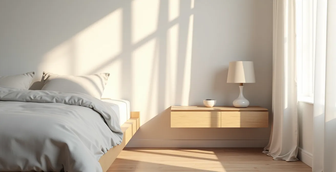La mesita de noche es el epicentro del ruido visual cercano a la cama. Es el lugar donde acumulamos el libro a medias, el móvil, el vaso de agua y otros objetos. La elección del mueble en sí tiene un impacto directo en la percepción de orden y amplitud, especialmente en dormitorios pequeños, muy comunes en las ciudades españolas. La principal batalla se libra entre las mesitas tradicionales con patas y las modernas mesitas suspendidas o flotantes.